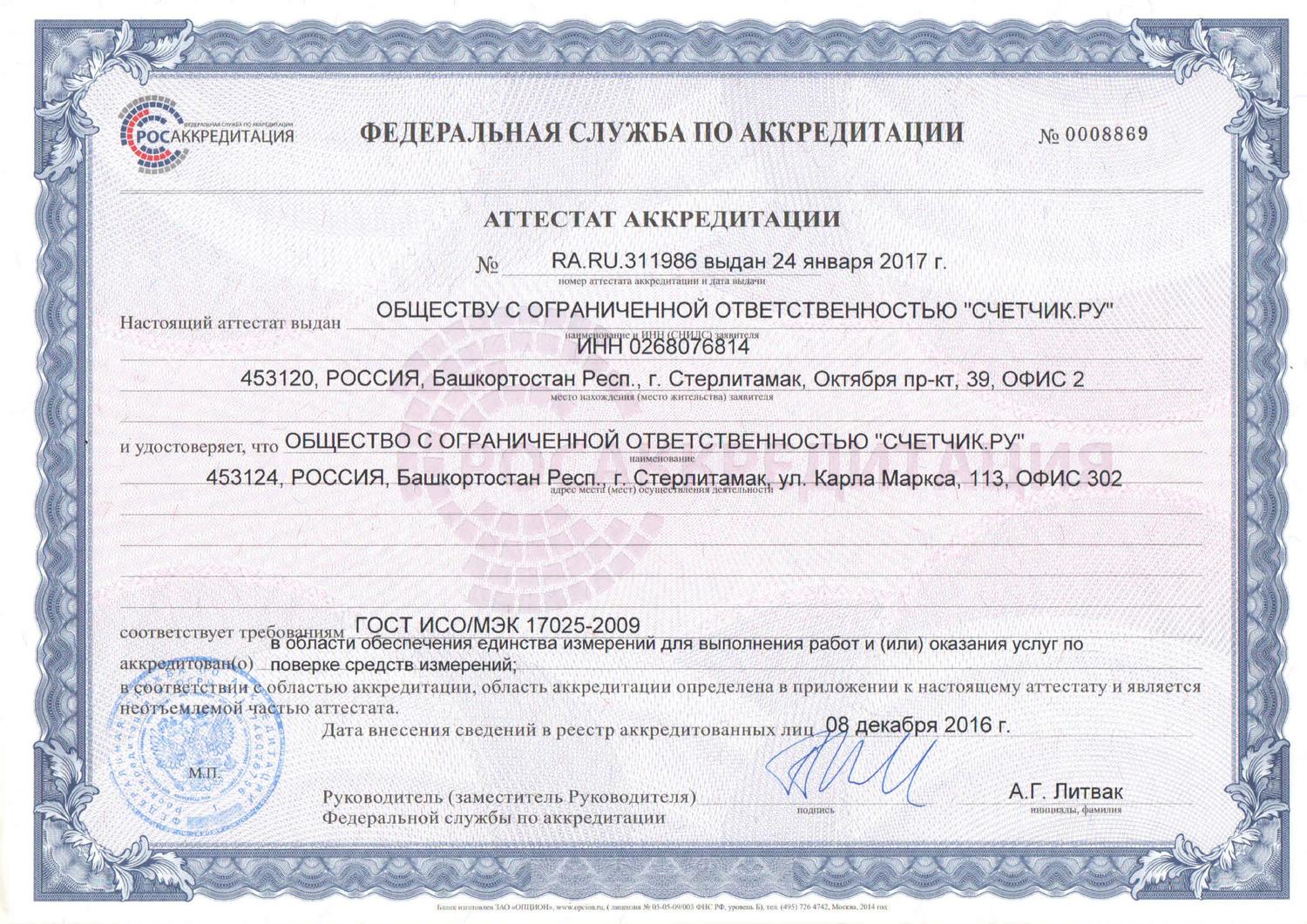 АТТЕСТАТ АККРЕДИТАЦИИ